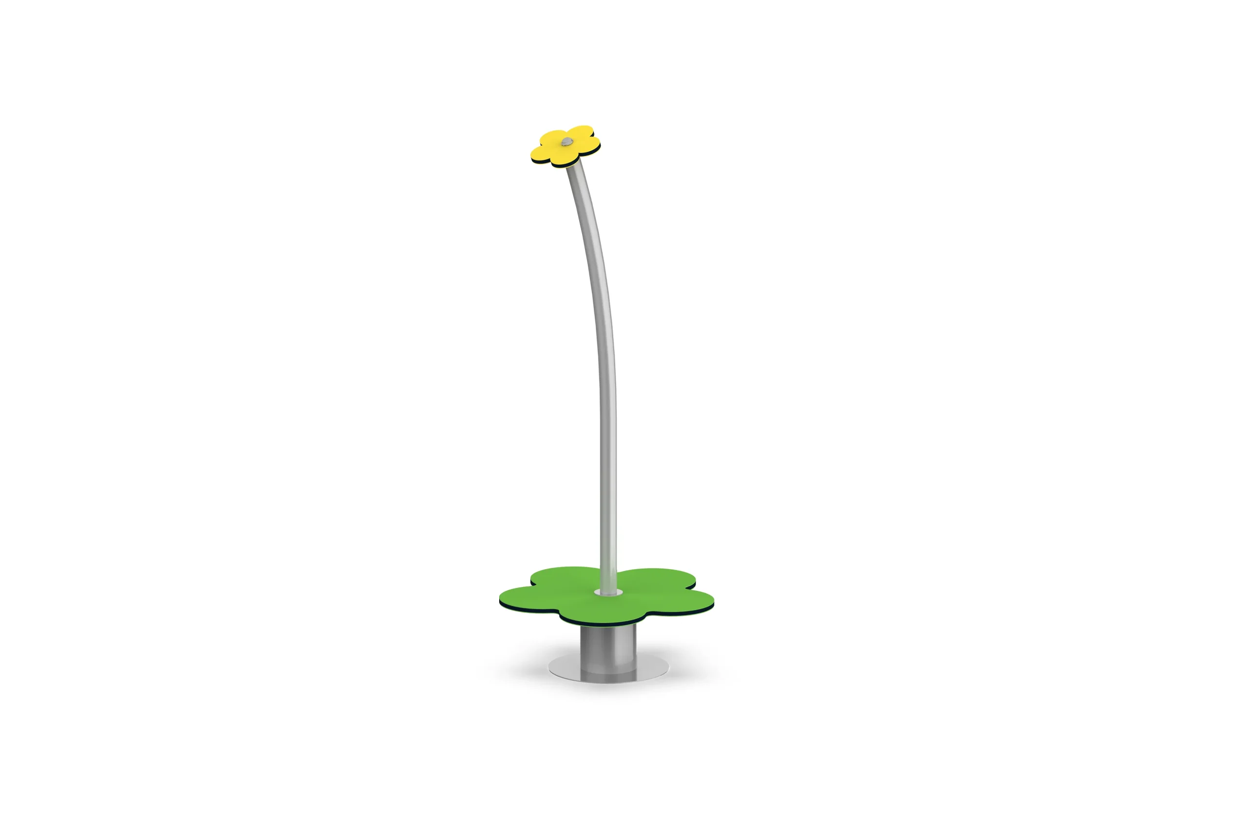 This single-person playground spinning features a “Spring Blossom”-inspired core design. A silver-gray curved rod is paired with a yellow-green flower and a three-leaf base; the agile curve of the flower stem recreates the swaying posture of a blossom dancing in the wind, presenting an overall look like an interactive and playful flower installation. Users can step on the three-leaf base and sway their bodies to drive the flower stem to spin and rock. It not only retains the dynamic fun inherent to spinners but also endows the experience with a fresh spring ambiance through its adorable flower elements. It is a single-person spinner installation that allows children to immerse themselves in the joy of “playing with a flower” in community spaces.