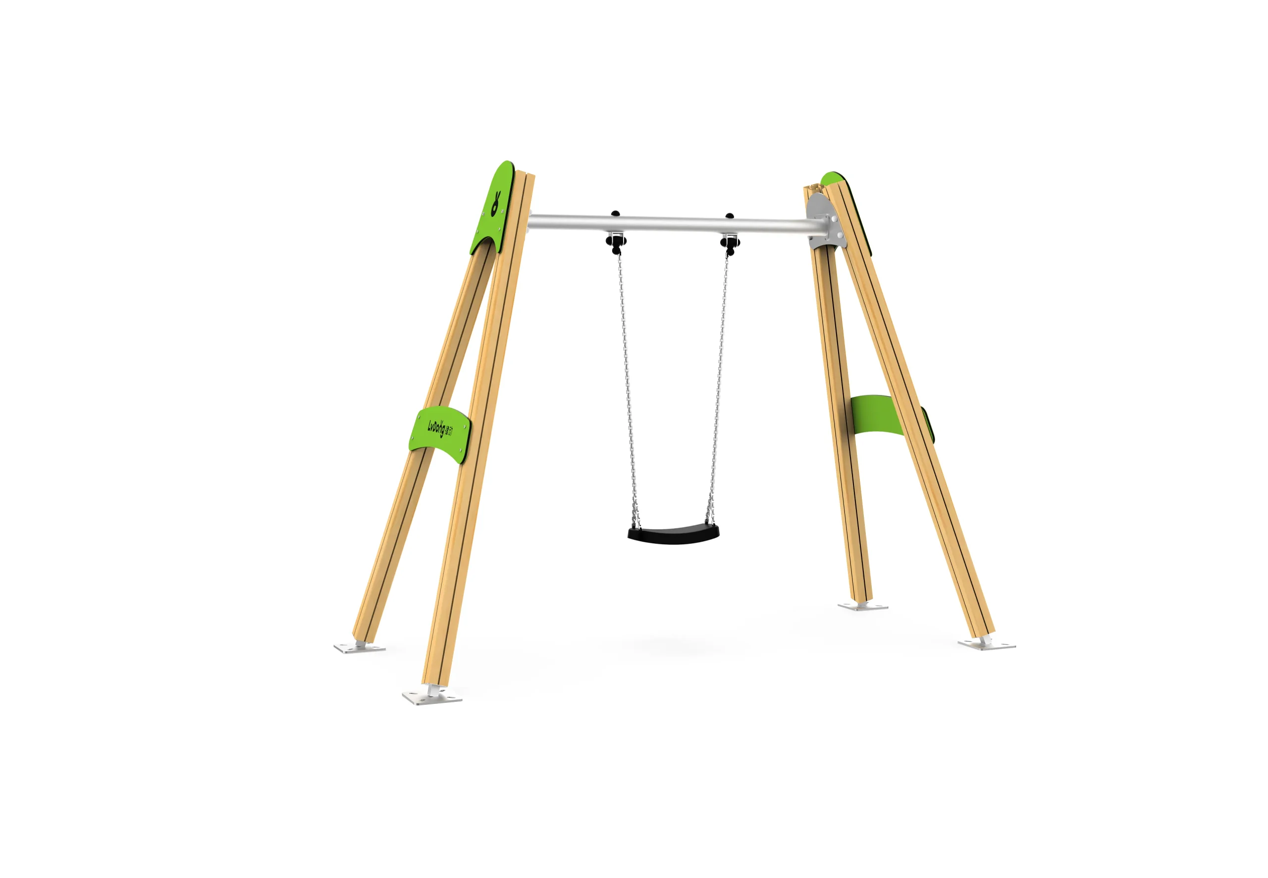 This single swing set features a “Natural Forest Style”-inspired core design, boasting light wood-toned supports paired with fresh green decorative elements.