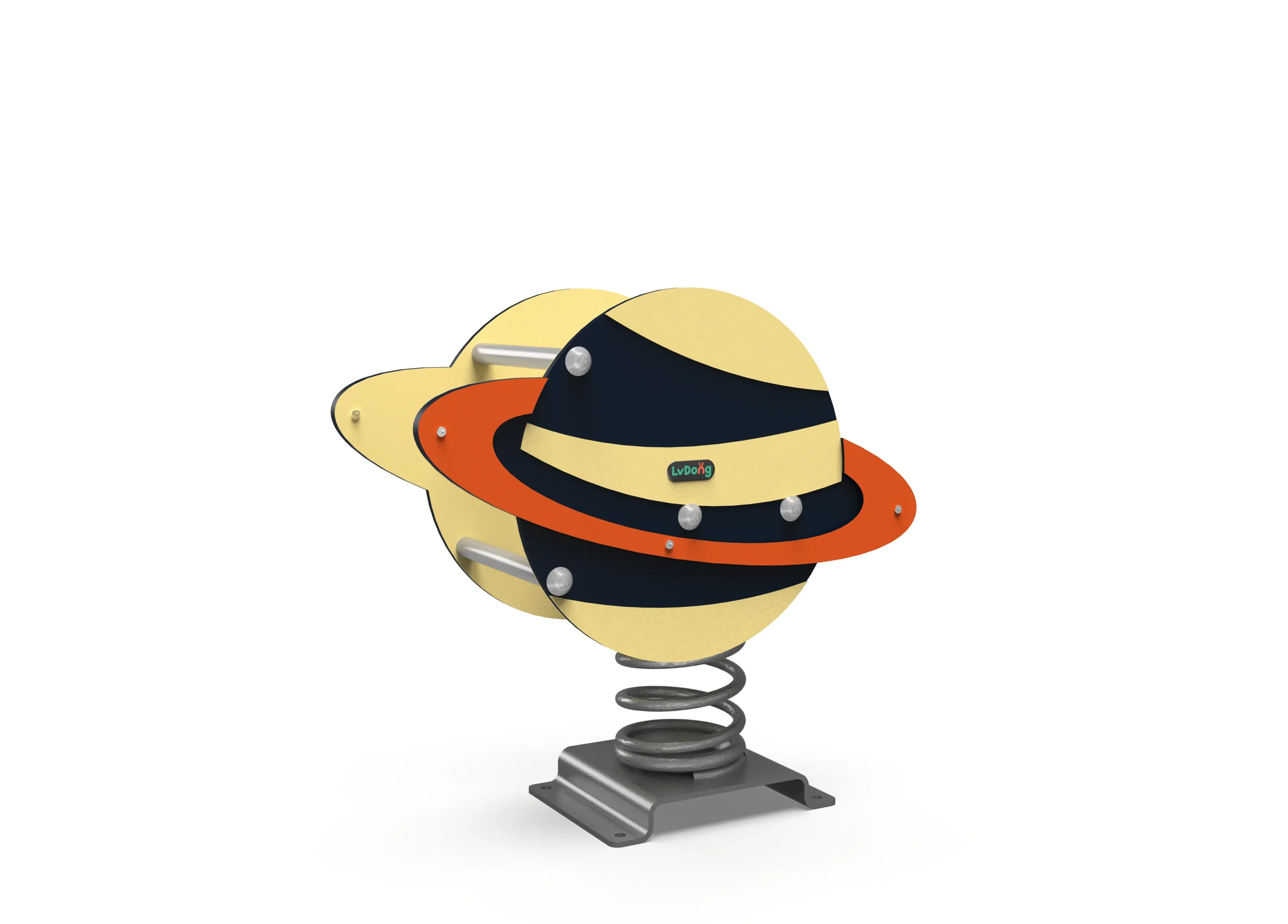 This spring playground equipment features an “Interstellar Saturn”-inspired core design. It boasts a planet base in warm yellow and deep blue, paired with a striking orange ring; the rounded planetary outline recreates Saturn’s iconic appearance, and the spring base at the bottom complements its sci-fi form, presenting an overall look like a “levitating mini planet”. It not only retains the lively fun inherent to rockers but also endows outdoor play with a sense of cosmic exploration through its sci-fi planetary design. It is a lighthearted recreational installation that sparks children’s curiosity about the galaxy in community spaces.