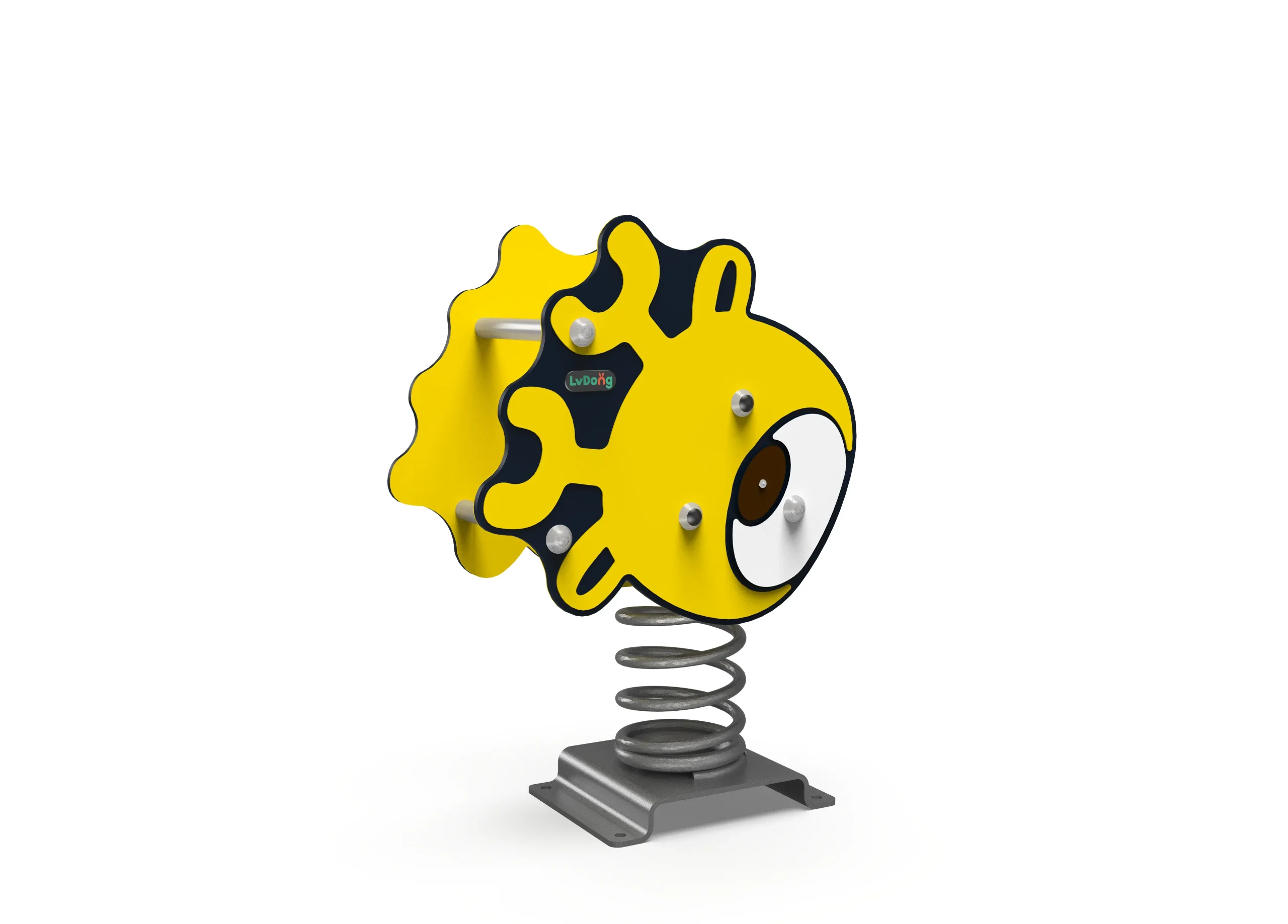 This spring playground equipment features a “Cuddly Little Hedgehog”-inspired core design. It boasts a fluffy, warm-yellow quill outline paired with a round, adorable smiling face; the delicate serrated edges recreate the hedgehog’s lovely form, and the spring base at the bottom complements its cute and playful shape, presenting an overall look like a “well-behaved little hedgehog” curled up into a ball. It not only retains the playful fun inherent to rockers but also endows outdoor play with a comforting and approachable vibe through its cuddly hedgehog image. It is a lighthearted recreational installation that makes children eager to get close to it in community spaces.